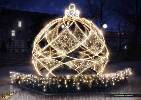 Dotarliśmy do wizualizacji działania najnowszego nabytku iławskiego ratusza – dużej świątecznej bombki zdobionej światłami led, którą ustawiono na „żabie”, czyli fontannie w parku miejskim.