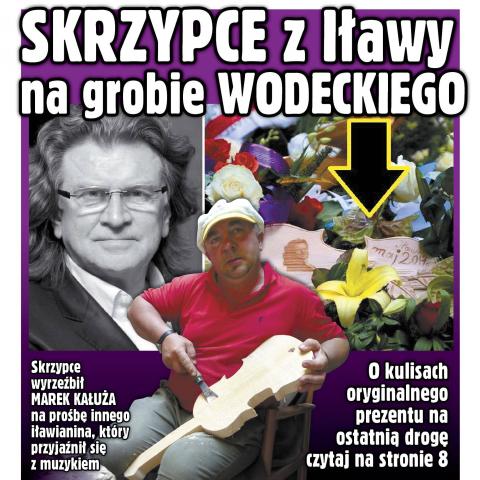 Niesamowity akcent naszego regionu na pogrzebie Zbigniewa Wodeckiego. Oto wśród kwiatów na grobie znalazły się rzeźbione skrzypce z podobizną muzyka i napisem „Iława, maj 2017”. Rzeźbę wykonał artysta Marek Kałuża, zaś na grobie ułożył ją Mariusz Jackowski, pomysłodawca akcji.