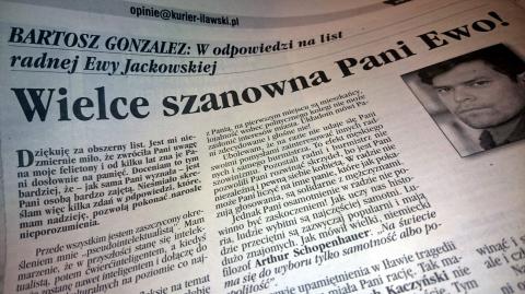 O wybaczenie proszę, iż zniżyłem się do użycia tak chamskiego określenia w stosunku do Pana Bartosza Gonzaleza z głośnego "listu do iławian" skleconego przez SŁOŃCE IŁAWY, radną Ewę Jackowską.