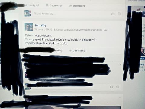 Rzecznik prasowy iławskiego szpitala Tomasz Więcek tak komentuje na publicznym portalu Facebook wizytę Papieża w Polsce.