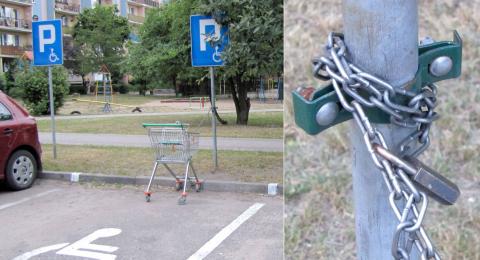 Na parkingu przy ul. Smolki w Iławie miejsce dla niepełnosprawnych jest notorycznie zajęte przez… wózek sklepowy. W ten sposób „rezerwuje” sobie zmotoryzowany inwalida.