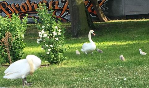 | 35386. | Nad rzeką Iławką deptak opanowała powiększona rodzina łabędzi.