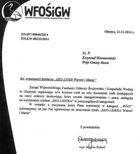 Zamiast wyjaśnień zamieszczam w tej sprawie kopię pisma organizatora, czyli WFOŚiGW w Olsztynie.
