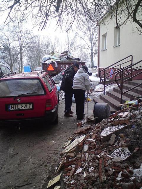 Pięknie. A remont był? ;-) No ktoś się tu mocno nie popisał. I jak ci biedni ludzie mają tam wejść jak gruz pod nogami. No dobra nie będę przesadzał - obok. Wygląda to bardzo NIE zachęcająco. Mam nadzieję, że podjazd dla wózków wszelkiego rodzaju nie jest zastawiony lub zagruzowany.