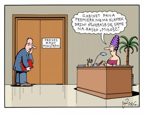 Raptus Kaczyński to dla nich gorzej niż obca władza, a dzisiaj w polityce króluje Miłość! Zobacz to na poniższym obrazku autorstwa Pana Andrzeja Mleczki pt. „Petent u Pana Premiera”. |