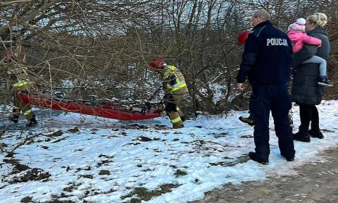 Dziś w tym samym tragicznym miejscu wpadł do wody pies. Strażacy go wyciągnęli.