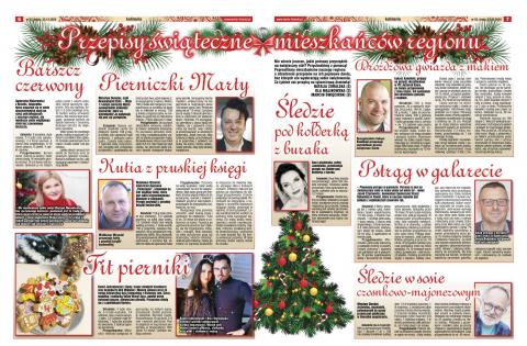 | 42518. | Przepisy na świąteczny stół z kuchni osób znanych i lubianych w regionie. Czy wiecie jak przyrządzić np. „śledzie pod kołderką”...? Brzmi trochę dwuznacznie, ale smakuje bosko! – jak przystało na świętowanie 2020. urodzin Jezusa, najsłynniejszego stolarza i proroka chrześcijańskiego w dziejach ludzkości.