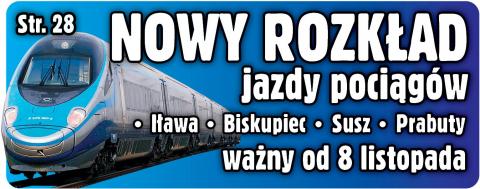 Stacje: Iława, Biskupiec, Susz, Prabuty.