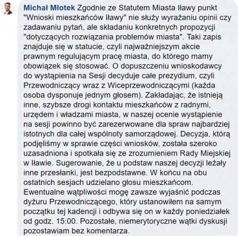 Przedstawiam dyskusję na miarę XXI wieku między burmistrzem Iławy Dawidem Kopaczewskim a radnym Wojciechem Szymańskim.