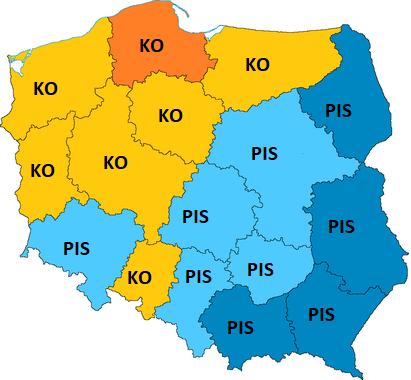 Dwa wrogie obozy mają po 9 mandatów. Języczkiem uwagi jest PSL (3). |