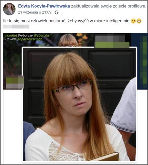 Rozumiem też, że nic innego Panią nie kierowało, tylko dobro wspólnoty samorządowej miasta? Zmieniła Pani barwy polityczne i start z komitetu innego kandydata nie miał na to wpływu? Nie sprawiło też Pani satysfakcji umieszczenie odpowiedzi ze starostwa na swoim profilu na Facebooku, zatytułowane "Taka sytuacja", tak?