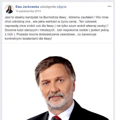 Poszedłem nieco dalej. Przeanalizowałem kampanię Macieja Mikołajczyka. Zaimponowało mi to, że jako jedyny prowadzi kampanię społeczną i zwraca uwagę na problemy społeczne... Pokazuje w jakich warunkach ludzie żyją i się ich nie boi. Jest to energiczna kampania. Podoba mi się to, że Mikołajczyk zaprasza znane osobistości polityczne do Iławy. Widzę jego zdjęcia z ministrami i to może być furtka, by wreszcie pieniądze z góry wpływały do Iławy.