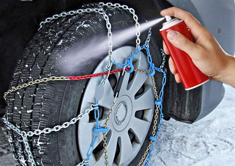 Łańcuchy wymagają jednak wprawy w zakładaniu, ograniczają prędkość i można je stosować jedynie na ośnieżonych drogach. W sprzedaży pojawiło się panaceum: łańcuchy w sprayu. Wystarczy spryskać koła napędowe i odczekać kilka minut.