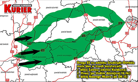 Studium korytarzowe to szukanie wariantów przebiegu drogi. Aktualnie do wyboru są one trzy: przez Zalewo, Iławę oraz ostatni – przez gminę Biskupiec, Nowe Miasto Lubawskie i Lubawę (tzw. wariant południowy).