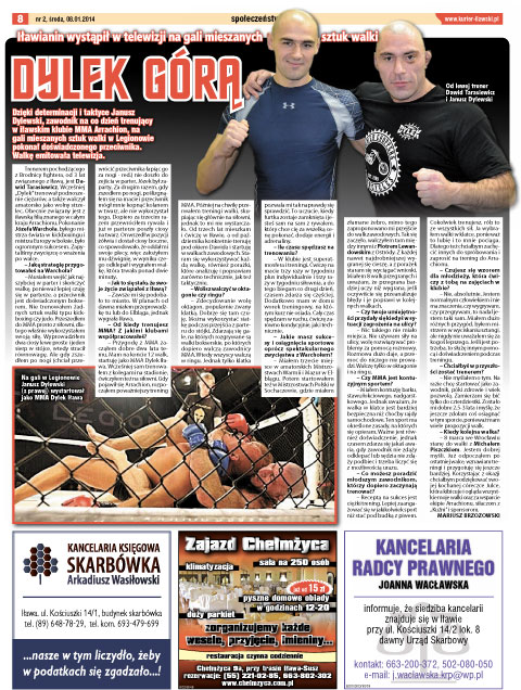 Dzięki determinacji i taktyce Janusz Dylewski, zawodnik na co dzień trenujący w iławskim klubie MMA Arrachion, na gali mieszanych sztuk walki w Legionowie pokonał doświadczonego przeciwnika. Walkę emitowała telewizja.
