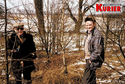 Stefan Trykacz i Feliks Zbysiński na cięciu brzózek Wielkanocnych, okolice Gardzienia pod Iławą, lata 90-te