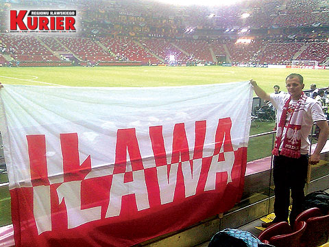 Z Iławy na mecz Polska-Grecja w Warszawie pojechał m.in. Karol Synowiec z Iławy. Wziął ze sobą narodową flagę z napisem „Iława”, którą rozwiesił na trybunach.