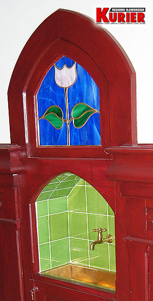 atrakcją jest kranik z miedzianym zlewem w ścianie