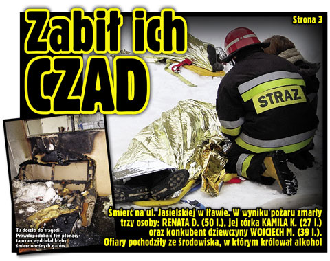 Znowu doszło do tragedii przy ulicy Jasielskiej w Iławie. W pożarze zatruły się tlenkiem węgla i zmarły trzy osoby: Renata D., jej córka Kamila K. oraz konkubent dziewczyny Wojciech M. Ofiary należały do patologicznego środowiska, gdzie rządził alkohol.