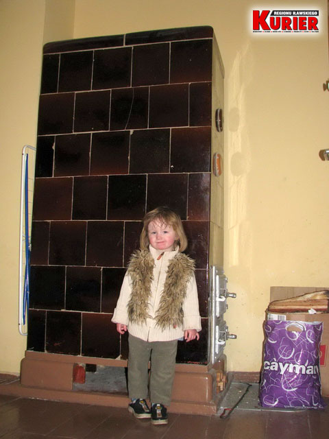 Mała Oliwia przy piecu kaflowym, który nie daje