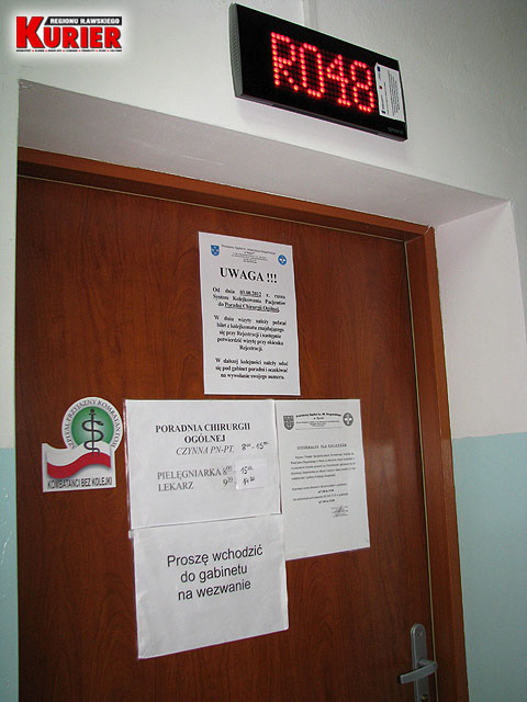 Jak powiedziano nam w rejestracji, wyświetlacze działają dla gabinetów chirurga i okulisty. W pozostałych – jak informuje rzecznik szpitala – personel wywołuje chorego wg przypisanego numeru. Z czasem wyświetlacze mają działać przy wszystkich gabinetach.