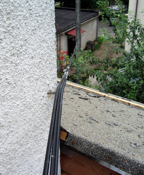 Naprężony przewód dotykał ściany budynku i przez to nie można było ułożyć ocieplenia z płyt styropianowych. Telekomunikacja nie pozwoliła przesunąć kabla samodzielnie robotnikom, grożąc interwencją policji.