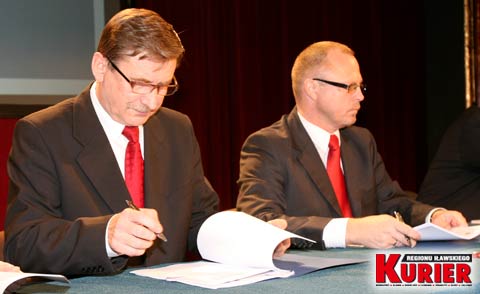 podpisują (od lewej) burmistrza Iławy Włodzimierz Ptasznik oraz marszałek województwa Jacek Protas