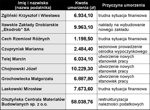 2004-05-06 Kto dostał umorzenie podatku