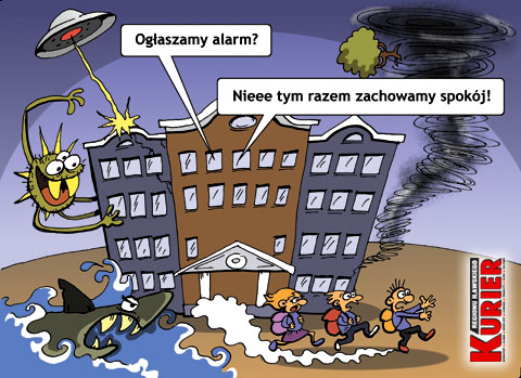– Zrobiono to w celu zapewnienia dzieciom bezpieczeństwa i ułatwienia rodzicom odbioru swych pociech – wyjaśnia dyrektor „trójki”. – Rodzice byli proszeni przez wychowawców telefonicznie o odbieranie w miarę możliwości swych dzieci. Wyznaczeni nauczyciele pilnowali wyjść ze szkoły.