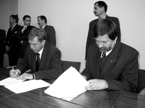 Burmistrz Adam Żyliński (po prawej) podpisuje