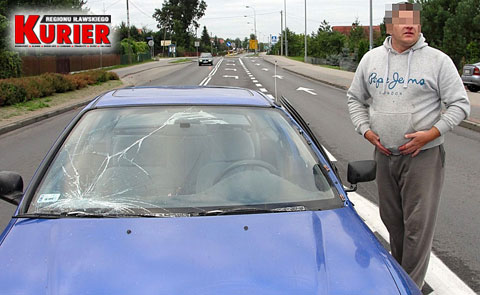 – Jechałem jakieś 40 km/h. Zwróciłem uwagę na idących po chodniku dwóch młodych ludzi. W pewnym momencie jeden z nich zaczął biec, a gdy był na wysokości mojego samochodu, skręcił na jezdnię, wybił się nogami z pasa zieleni, w powietrzu zwinął się w „kulkę” i spadł na przednią szybę mojego auta – relacjonuje poszkodowany.