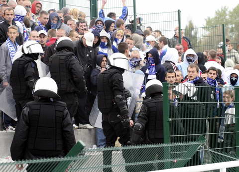 – Należałoby zacząć od usunięcia kamieni, którymi wysypany jest wjazd przed bramą główną na stadion – tłumaczy Nojman. – Mogą one posłużyć do rzucania nimi przez jednych kibiców przez drugich lub w policję. Ponadto wykonanie ogrodzenia sektora kibiców pozostawia wiele do życzenia. W trakcie minionego meczu pseudokibice nie mieli najmniejszego problemu ze zdemontowaniem kraty, która wykonana jest z delikatnego pręta.