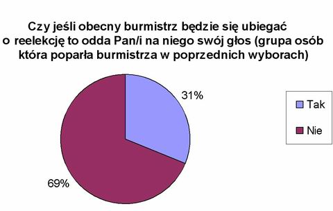 Niewiele lepiej prezentuje się obecny burmistrz w pozyskiwaniu nowych wyborców. Gdy 4 lata temu Iławianie dosyć wyraźnie podzieli się na dwa obozy, to podział ten utrzymał się do dziś. Z ankietowanych nikt, kto nie głosował na Jarosława Maśkiewicza w 2002 roku, nie zmienił swojego zdania i nie zamierza na niego głosować po jego ewentualnej decyzji o powtórnym ubieganiu się o fotel burmistrza.