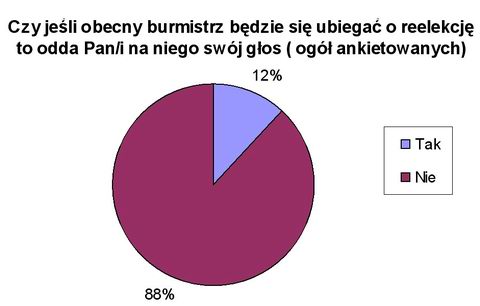 Patrząc na wyniki badań, bardzo w to wątpimy. Wątpliwe jest również, aby utrzymał burmistrzowski fotel, gdyby powtórnie zechciał się o niego ubiegać. Duży wpływ będzie zapewne miała na to tzw. „grupa rozczarowanych” – wyborców, którzy 4 lata temu poparli obecnego burmistrza, a dziś nie chcą nawet słyszeć, aby na niego powtórnie głosować.