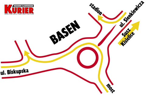 Zgodnie z uzgodnioną z ratuszem dokumentacją, dojazd do basenu i stadionu odbywać się będzie dwojako – dla jadących od Susza i Kisielic starą drogą dojazdową do stadionu, a dla pozostałych przez objazd ronda i wjazd z ulicy Biskupskiej (patrz mapka).