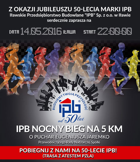 – Pomysłodawcą biegu jest IPB. Tym sportowym przedsięwzięciem Firma chce zaakcentować 50-lecie marki IPB. Będzie to pierwszy profesjonalny bieg nocny na terenie województwa warmińsko-mazurskiego, a zarazem pierwszy bieg nocny na atestowanej 5-kilometrowej trasie w Polsce. Trasa będzie ciekawa i szybka. Mamy nadzieję, że uczestnicy biegu, którzy zdecydują się pobiec, poprawią swoje rekordy życiowe na tym dystansie. Limit miejsc jest ograniczony do 800 osób. Liczymy na dużą frekwencję. Na pewno warto pobiec. Mamy zaprojektowane piękne jubileuszowe medale pamiątkowe. Otrzyma je każdy biegacz, który ukończy bieg w regulaminowym czasie jednej godziny. Będą też atrakcyjne nagrody finansowe i statuetki dla najlepszych. Zaplanowaliśmy również klasyfikację drużynową i mamy nadzieję, że zjawi się dużo drużyn aby walczyć o jedyny w swoim rodzaju Puchar Eugeniusza Jaremko. To będzie na pewno jedno z większych świąt biegania w województwie warmińsko-mazurskim, a na pewno w Iławie.