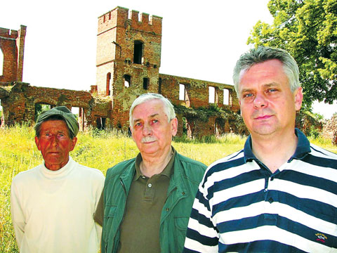 Na zamkowym dziedzińcu. Od lewej: Piotr i Roman Żuchowscy oraz Władysław Dańczyszyn – ludzie, którzy ruiny zamku w Szymbarku znają jak własną kieszeń