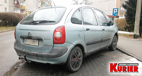Zdjęcie podejrzanego citroena wraz z informacją,