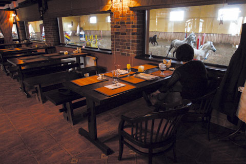 Restauracji, której wyróżnikiem jest widok na parkur, gdzie często trenują konie, towarzyszy bogato zaopatrzony bar.