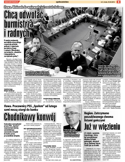 – Wniosek jest w tej chwili rozpatrywany przez naszych prawników – odpowiada Edyta Wrotek, rzecznik wojewody. – Nie ma znaczenia czy została tutaj podana podstawa prawna, ponieważ każdy taki wniosek traktujemy jako sygnał w sprawie, który należy sprawdzić. W związku z tym zostanie wdrożone postępowanie wyjaśniające. Zgodnie z ustawą o samorządzie gminnym jako organ nadzoru mamy prawo żądania niezbędnych informacji i danych dotyczących organizacji i funkcjonowania gminy. Po otrzymaniu tych informacji ocenimy, czy zachodzą przesłanki, by dokonać takiego odwołania.