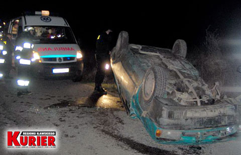 Auto, odbijając się od drzewa, wywróciło się do góry kołami i zatrzymało na środku jezdni. Podróżowały nim trzy osoby.
