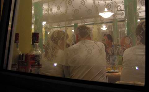 Stołówka „budowlanki”, 12 maja. Wieczorne spotkanie kolejarzy. Na parapetach stoją puste butelki po „Sobieskim”.
