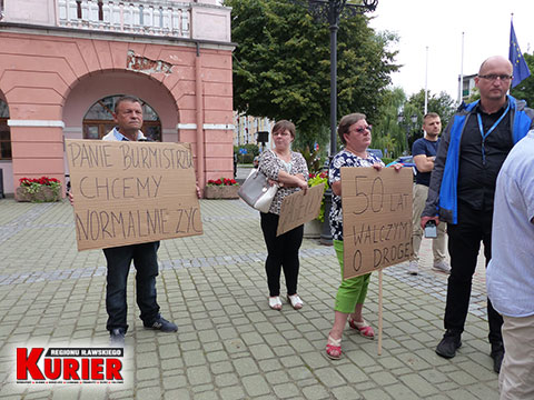 Około 30 osób przyszło pod ratusz i uczestniczyło w pikiecie w sprawie budowy drogi oraz chodnika na ul. Jagiełły. Burmistrz wyszedł do mieszkańców, ale nic im nie obiecywał. Przyznał, że problem istnieje, ale miasto musi ustalić, które drogi w mieście będą traktowane priorytetowo. Mieszkańcy nie składają broni i zapowiadają swoją wizytę na sesji rady miasta.