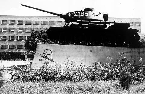 Radziecki czołg w czasach PRL-u stał przed Urzędem Miejskim Iławy, dziś Starostwa Powiatowego, jako symbol przyjaźni polsko-radzieckiej