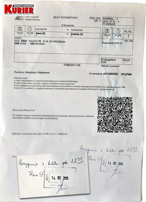 W tej sytuacji Wasiłowski natychmiast poszedł do dworcowej kasy zażądać reklamacji biletów, które kosztowały łącznie prawie 500 zł. Usłyszał tam, że skoro bilety zostały kupione przez internet, jedynie w ten sam sposób może złożyć reklamację.