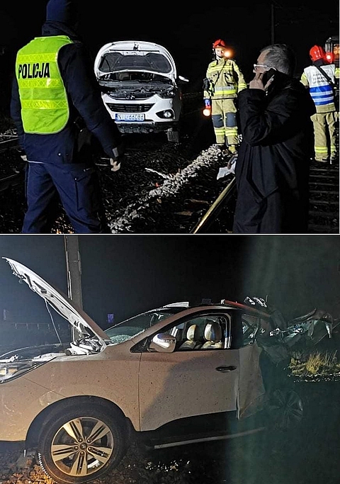 Pociąg ściął pół samochodu