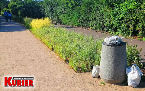 Teraz o śmieciach. Stanęły wiaty, zrobiło się czyściej. Ale i tragiczniej. Tu kładę na agendzie sprawę monitoringu, trzeba Iławę nim osaczyć. Ludzie już generalnie wyuczeni, jaki odpad jest jakim odpadem, wypytuję dzieci/emerytki, chęć edukacji przeogromna. I – co ważniejsze – wdrażana w praktykę, a będzie tylko lepiej. Jednakże pojawiła się degrengolada. Nie wiem kto, ale jacyś jaskiniowcy, bez dostępu mniemam do wiat, zaczęli cichaczem (bo raczej nie w godzinach światła dziennego) raczyć swoimi odpadami uliczne małe kosze, betonowe, które teraz generalnie wybuchają, robią bokami.