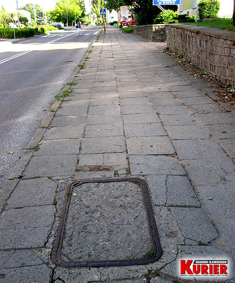 Ulica Sobieskiego to za to bankowo-urzędowe centrum grodu, tam się załatwia sprawy, chodniki są codziennie wydeptywane przez tysiące stóp. I zobaczcie te chodniki – to jedyny punkt Iławy umiejscowiony nieperyferyjnie, w którym wciąż leżą stare płyty, a do tego – co macie możliwość zobaczenia na zdjęciu – efektu dopełnia pordzewiały, bezsensowny łańcuch, który można przecież wyjąć i zawieźć na złom w półtorej godziny. Ani on chroni, ani broni, a ciężko go doprawdy znieść. Pora go raz na zawsze usunąć, a potem zająć się po obu stronach ulicy wymianą nawierzchni. Odcinki są w sumie niewielkie, a wizerunkowo miasto pójdzie kilka poziomów w górę. Sobieski to dla mnie kolejny punktowiec do odcięcia.