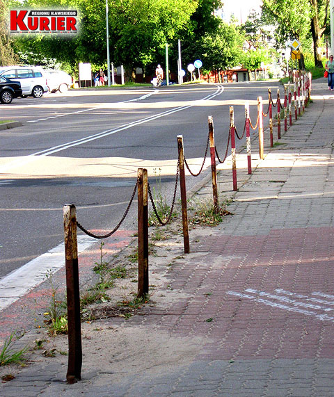 Odrzucające, pordzewiałe łańcuchy na ul. Sobieskiego.