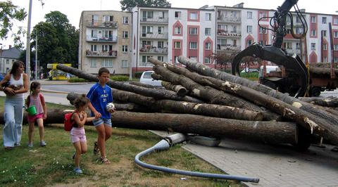 Przyczepa wyładowana drewnem znowu przewróciła się na rondzie przy iławskim ratuszu. Zawinił pędzący kierowca. Tylko jakimś cudem obyło się bez ofiar. Tony drzewa przeleciały tuż obok przechodniów.